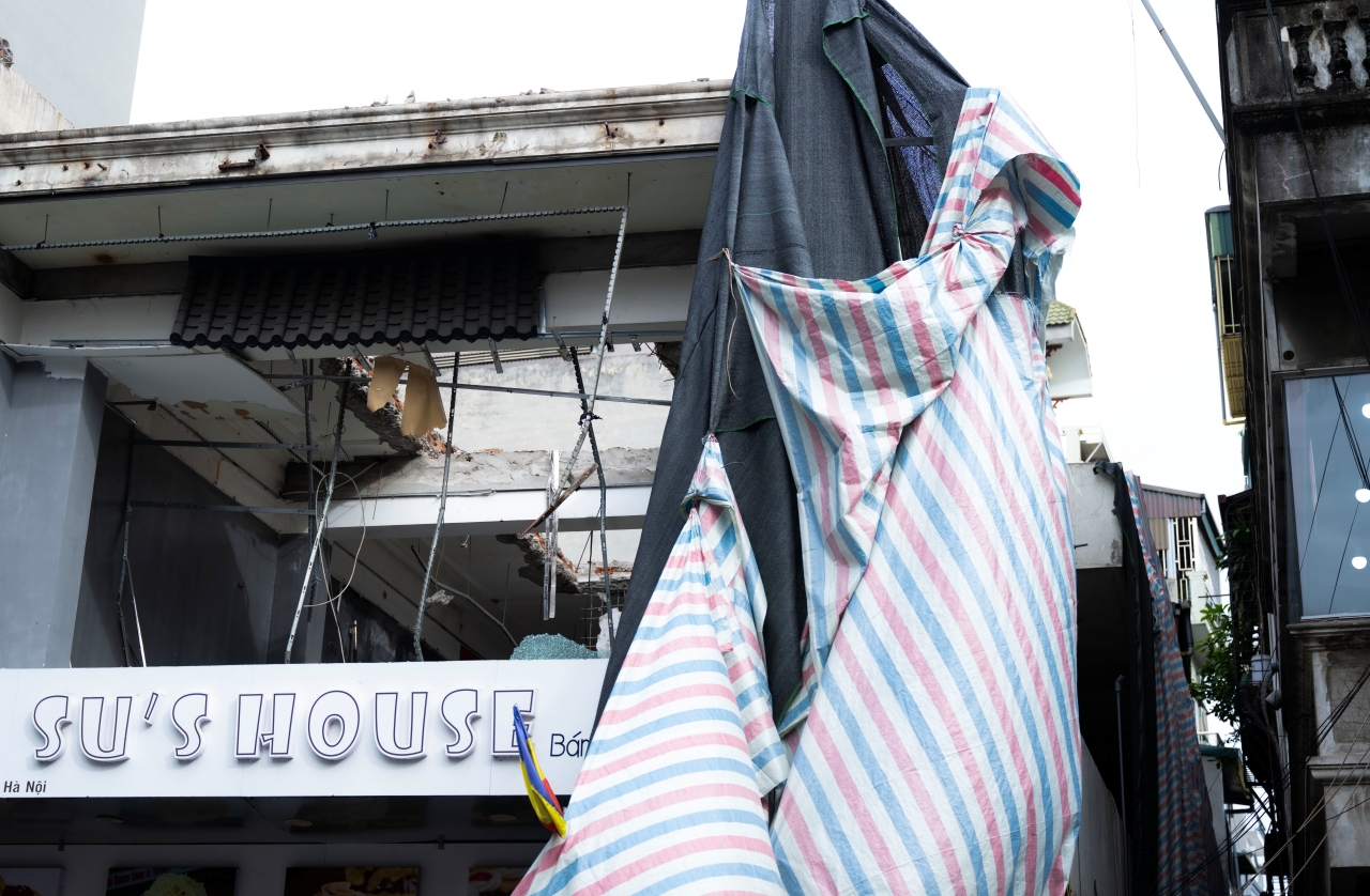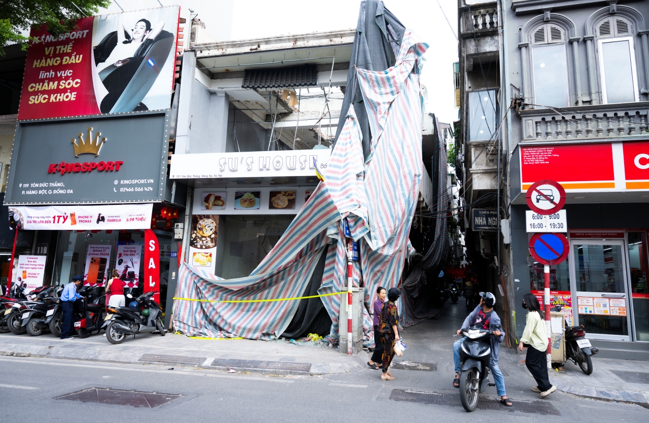 Theo ghi nhận của phóng viên, căn nhà đang sửa chữa nằm ngay mặt phố, bên hông là ngõ Văn Chương dẫn vào khu dân cư. Tại hiện trường, nhiều mảnh kính và bê tông đã được dọn dẹp, tuy nhiên khu vực thi công tầng 2 bị đục phá nham nhở, che chắn sơ sài, chỉ có vài tấm bạt tạm thời đã bị gió thổi bay, để lộ khung sắt và vật liệu xây dựng ngổn ngang, tiềm ẩn nguy cơ mất an toàn nghiêm trọng cho người qua lại.