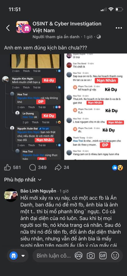 MỘT SỐ BÌNH LUẬN TỪ CÁC THÀNH VIÊN TRONG NHÓM OSINT & Cyber Investigation Việt Nam CHO RẰNG NGƯỜI CÓ TÀI KHOẢN “HOA TROI” CŨNG ĐÃ BỊ Đ*O PHỦ LẤY TH* CẤP