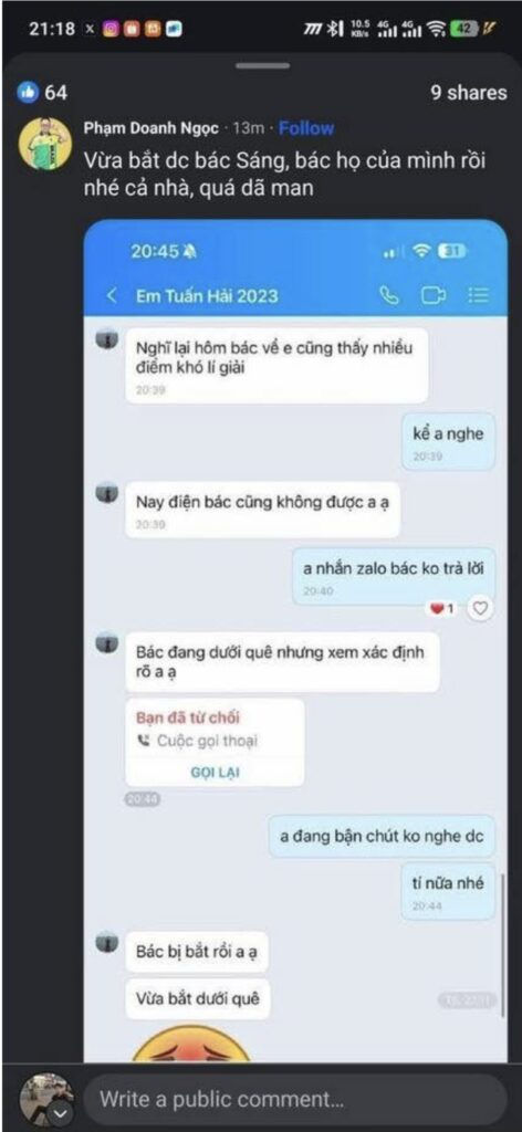 Một số tài khoản mạng xã hội cho rằng lực lượng chức năng đã tiến hành làm việc với một người bị nghi liên quan. Tuy nhiên, đến thời điểm hiện tại, chưa có bất kỳ cơ quan có thẩm quyền nào xác nhận thông tin này. Nhiều nội dung xuất hiện trên mạng chỉ dừng ở mức đồn đoán, chưa có căn cứ.