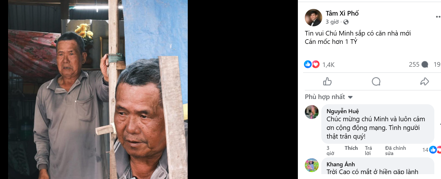 Mới đây, mạnh thường quân báo chú Minh đã nhận được 1 tỷ tiền quyên góp và sẽ sớm xây nhà mới cho chú