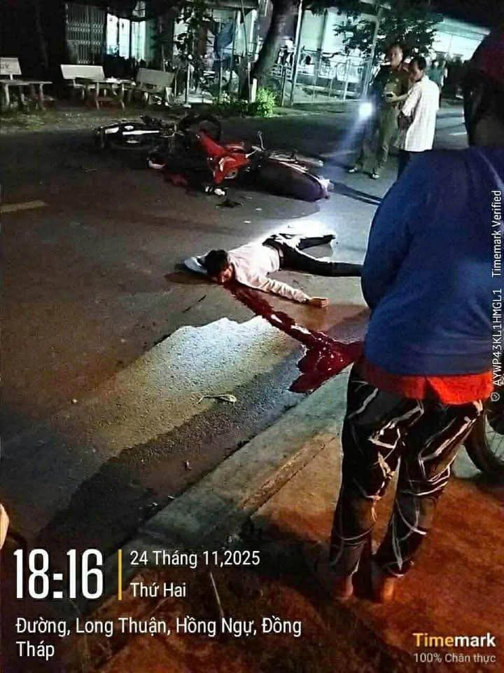 Đêm hôm tại đường Long Thuận, TP. Hồng Ngự, Đồng Tháp, đã xảy ra một vụ va chạm giao thông nghiêm trọng giữa một học sinh và một người đàn ông đi đường.