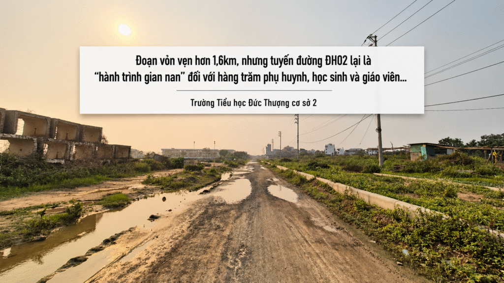 Chỉ vỏn vẹn hơn 1,6km, nhưng tuyến đường ĐH02 tại xã Hoài Đức đang trở thành “hành trình gian nan” đối với hàng trăm phụ huynh, học sinh và giáo viên…