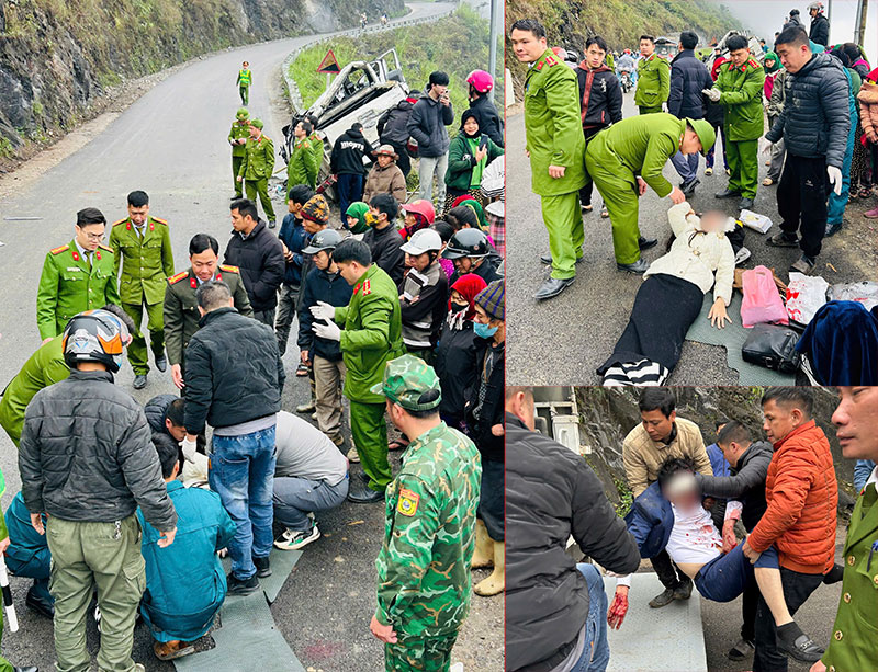 Do xe rơi xuống vị trí taluy sâu, các nạn nhân bị mắc kẹt bên trong phương tiện. Lực lượng Công an xã Cán Tỷ cùng các đơn vị phối hợp đã khẩn trương tiếp cận, đưa toàn bộ 3 nạn nhân ra khỏi xe và chuyển đi cấp cứu tại Bệnh viện Đa khoa khu vực Quản Bạ, tỉnh Tuyên Quang.
