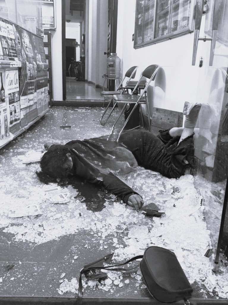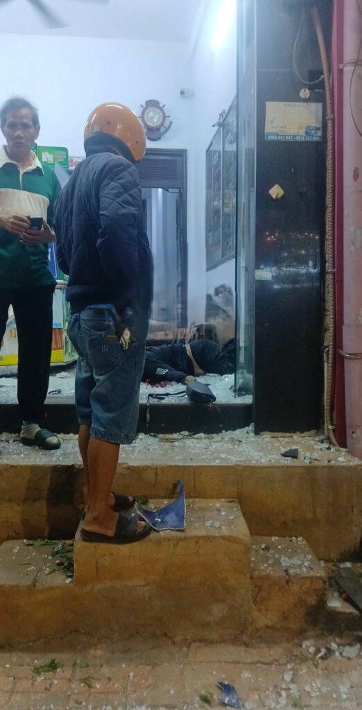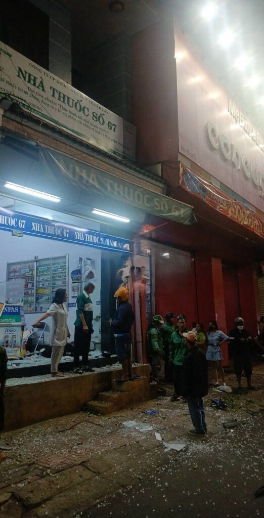 Hiện trường lúc xảy ra vụ việc tại Ngã 3 Eakao tối nay. Nạn nhân gần 1 cô trung niên và 1 cháu bé. Nghe bảo cô nặng lắm… cả 2 đều được đưa đi cấp cứu Bv Vùng