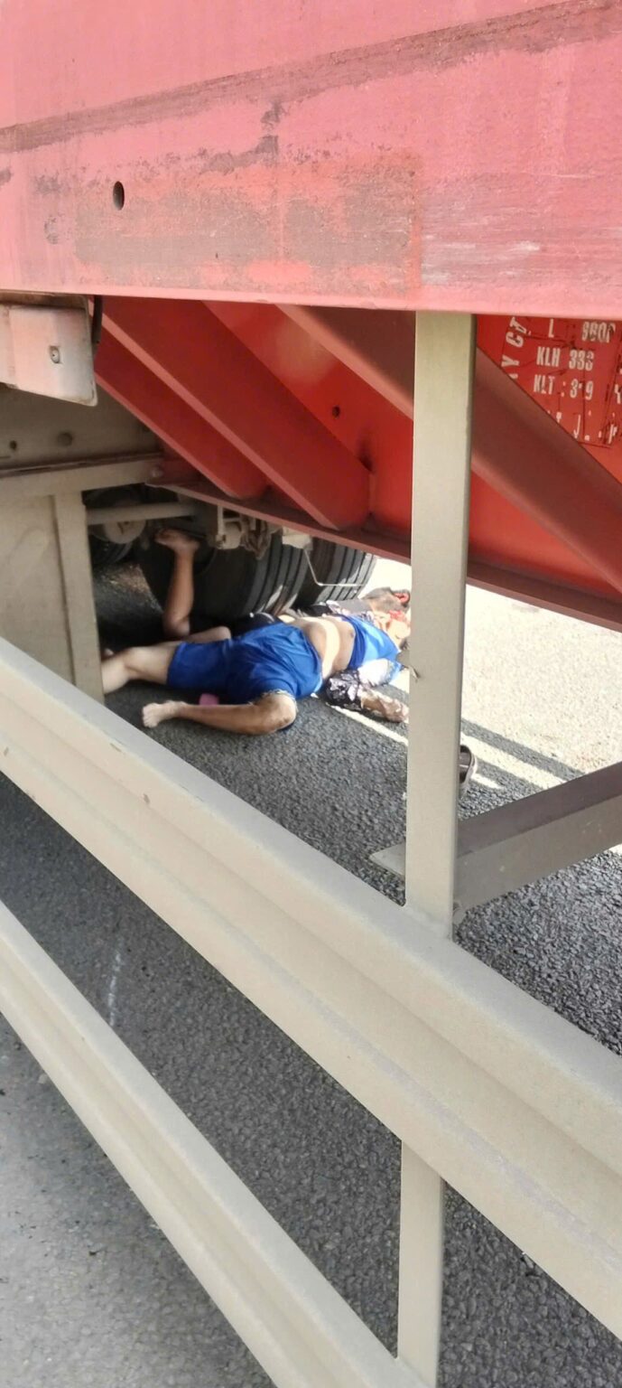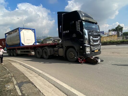 Khi tới gần nút giao quốc lộ 1K, tài xế cho xe chuyển vào làn giữa, giảm tốc còn 17km/h, rồi tiếp tục đi vào làn xe máy để rẽ phải. Cùng lúc đó, xe đầu kéo va chạm với xe máy do ông S. điều khiển, chở vợ và cháu ngoại, chạy cùng chiều phía trước.