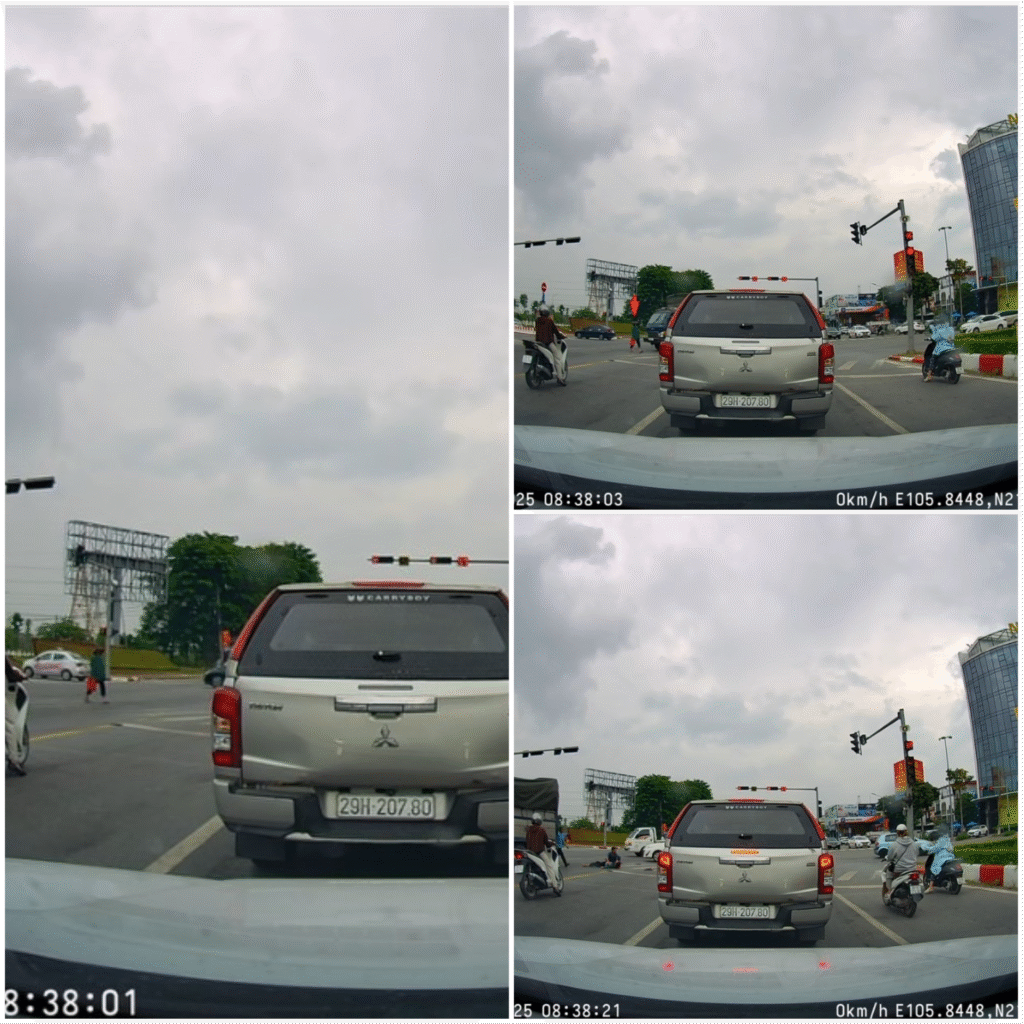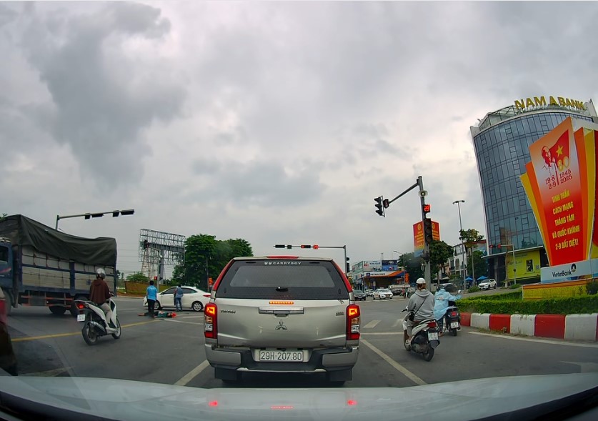 Tai nạn tại ngã 4 Đông Anh hôm nay, người đi bộ thì tưởng ô tô né, còn lái xe ô tô thì quá chủ quan không để ý để rồi