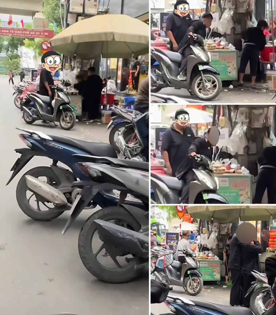 Kia là ông cu con ,áo đen và áo xanh mang kính ngồi trên xe wave kia là bạn cốt của nó, nó cứ hét vào mặt mẹ giữa đường giữa phố đòi tiền chắc để đãi bạn, mẹ bảo ko có, ông con hất luôn hàng hóa của mẹ xuống đất bebét, những hộp flan nhỏ xíu của mẹ lăn hết ra đường, mẹ thì vẫn cắm mặt dọn dẹp, vừa làm món cho khách sinh viên đang ăn ở quán. Đòi mãi không được ông con hất luôn xô đậu hũ của mẹ ra đất.. Chẳng khóc chẳng buồn, cứ lặng lẽ dọn dẹp, chắc mẹ cũng đã tuyệt vọng lắm rồi