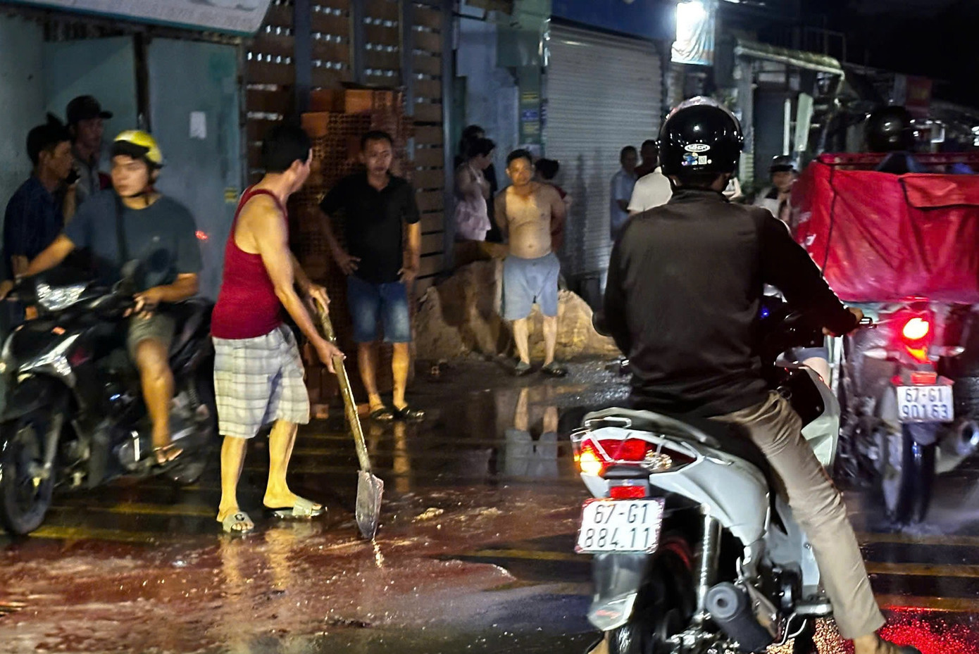 Tại hiện trường, thi thể nạn nhân nằm giữa đường với nhiều vết thương, bên cạnh là một cây rựa và nhiều gạch đá. Đến tối cùng ngày, rất đông người dân vẫn tụ tập theo dõi vụ việc.