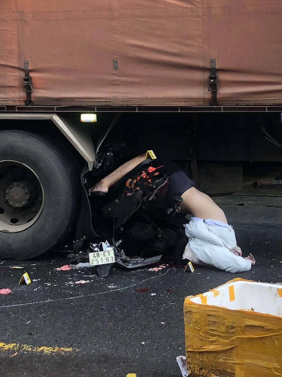 Một vụ tai nạn nghiêm trọng vừa xảy ra khi một nam thanh niên điều khiển xe máy đã tông mạnh vào phần đuôi của một xe tải đang đậu bên đường. Cú va chạm cực mạnh khiến nạn nhân tử vong tại chỗ, thi thể biến dạng do lực tác động lớn.