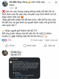 Vũ Đắc Duy chính thức tuyên bố không còn liên quan đến Chú Ba Minh.