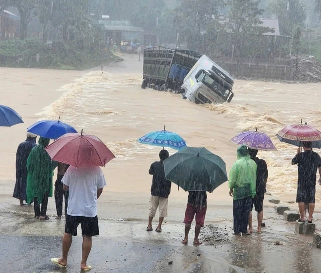 Gọi nhiều cuộc cho chồng nhưng không được, chị Phương vội nhờ người thân và bạn bè gần đó đến hỗ trợ. Khi mọi người tới nơi, xe tải của anh Thành là chiếc xe cuối cùng cố vượt ngầm lúc nước đang lên nhanh.