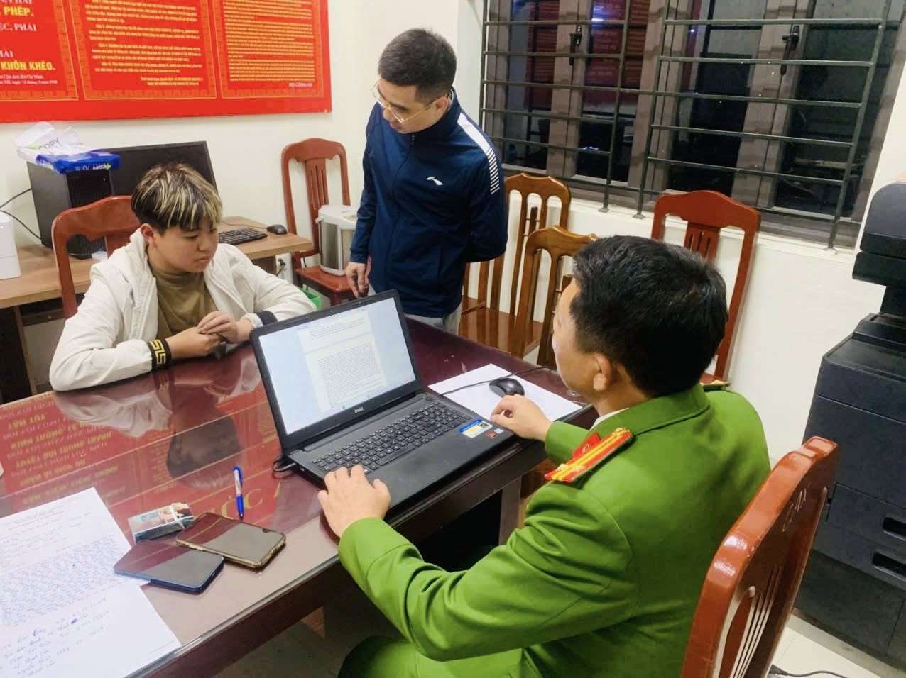 Đến 21h30 cùng ngày, lực lượng công an đã xác định và bắt giữ 2 đối tượng gồm Phạm Đức Tuấn (SN 17/4/2010, trú thôn Đức Hòa, xã Thanh Lâm) và Lại Đức Duy (SN 6/12/2009, trú thôn Bạc, xã Thanh Lâm), đưa về trụ sở làm việc.