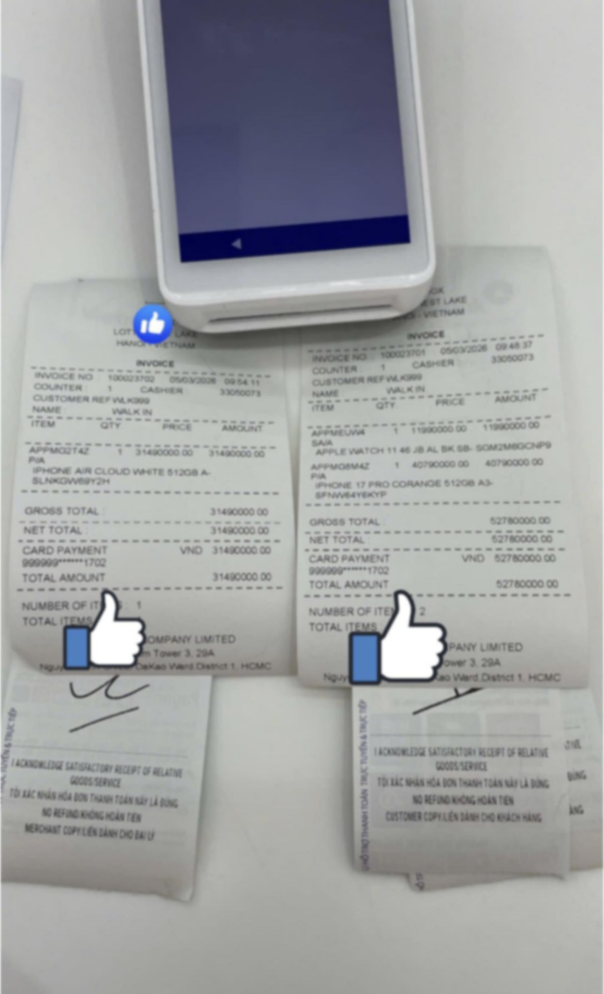 Một cô gái ở Hà Nội cho biết đã làm rơi thẻ tín dụng, sau đó có người nhặt được và dùng thẻ để mua iPhone, đồng hồ và nhiều mặt hàng khác với tổng số tiền khoảng 95 triệu đồng tại Lotte Mall Tây Hồ.