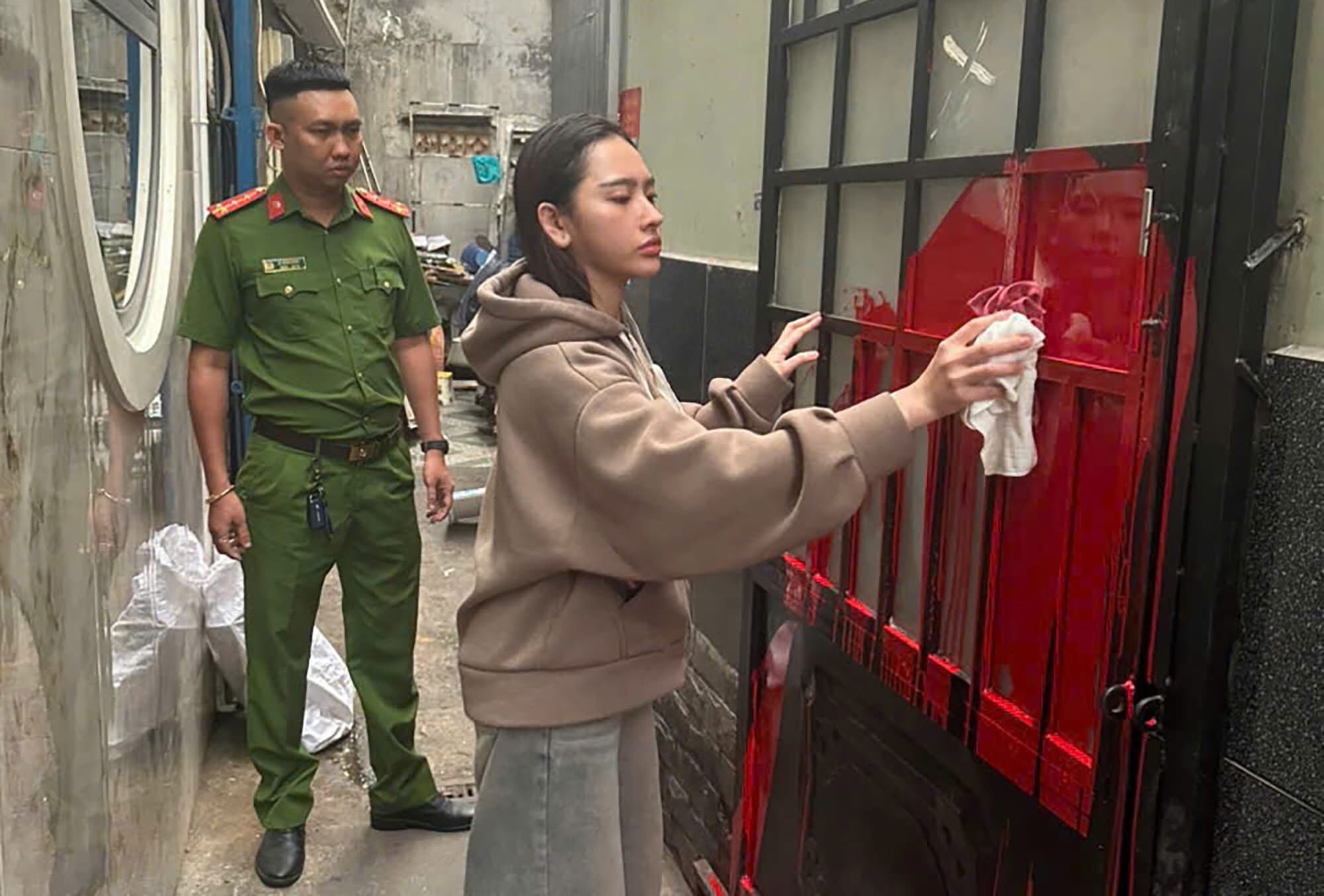 Chưa dừng lại, bị can tiếp tục vòng ra con hẻm bên hông, dùng sơn đỏ tạt vào cửa kéo phía sau và bờ tường. Sau khi gây án, Tiên vứt bỏ toàn bộ quần áo, phụ kiện phi tang rồi bỏ trốn về quê tại tỉnh Vĩnh Long ngay trong đêm.