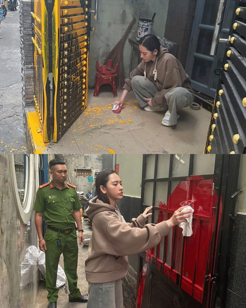 Sáng sớm ngày 13-2 (tức 26 Tết), người nhà anh P bàng hoàng khi thấy ngôi nhà loang lổ các vết sơn đỏ, vàng từ trong ra ngoài nên đã trình báo Công an phường Thạnh Mỹ Tây. Tại hiện trường, cơ quan chức năng ghi nhận lớp sơn đậm đặc bám dính chặt vào cửa, sân và tường hẻm, gây mất mỹ quan.