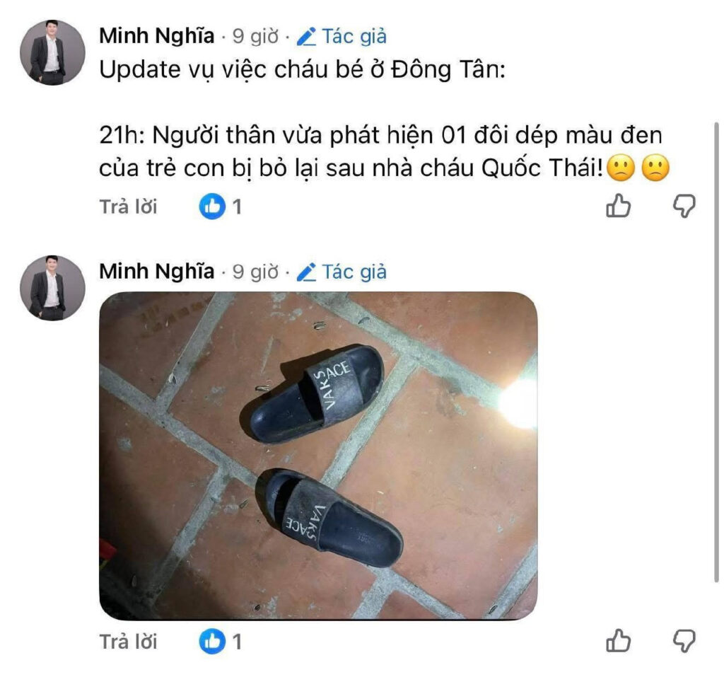 Theo ghi nhận, do thấy quá đông người tìm kiếm bên dưới, cháu bé không dám xuống mà “cố thủ” trên mái nhà suốt nhiều giờ liền. Đến khi không chịu nổi vì đói và mệt, cháu đã nghĩ cách ném đôi dép xuống phía sau nhà nhằm tạo dấu hiệu cho lực lượng tìm kiếm.