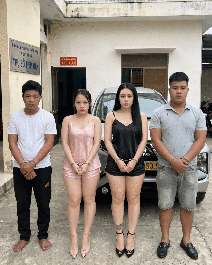 Theo thông tin từ cơ quan chức năng, các đối tượng bị tạm giữ gồm Bùi Trúc Hân (SN 1985, trú phường Quy Nhơn), Võ Khắc Lương (SN 2000, trú xã Tuy Phước Tây), Trần Thị Mỹ Huyền Lương (SN 2001) và Phạm Mạnh Xuân Ny (SN 2004, cùng trú tỉnh Đắk Lắk).