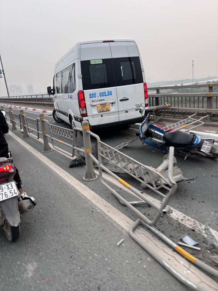 Vừa xong tại cầu Nhật Tân, 1 xe 16 chỗ t*ng vào lan can sang cả vỉa hè làn xe máy tý nữa thì có khi xuống sông 😢