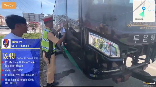 Theo đó, từ phản ánh qua Zalo gửi đến Cục CSGT của hành khách đi trên xe khách chạy tuyến cao tốc Cao tốc Vĩnh Hảo – Phan Thiết (hướng Bắc – Nam), lực lượng chức năng đã xác minh và dừng phương tiện để kiểm tra.