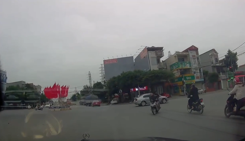Vào khoảng hơn 16 giờ cùng ngày, tại ngã tư giao giữa đường vào Khu công nghiệp Thụy Vân với Đại lộ Hùng Vương (tỉnh Phú Thọ), xảy ra tình huống giao thông nguy hiểm khi hai thanh niên điều khiển xe máy vượt đèn đỏ, sau đó trượt ngã ngay trước đầu một ô tô đang lưu thông.