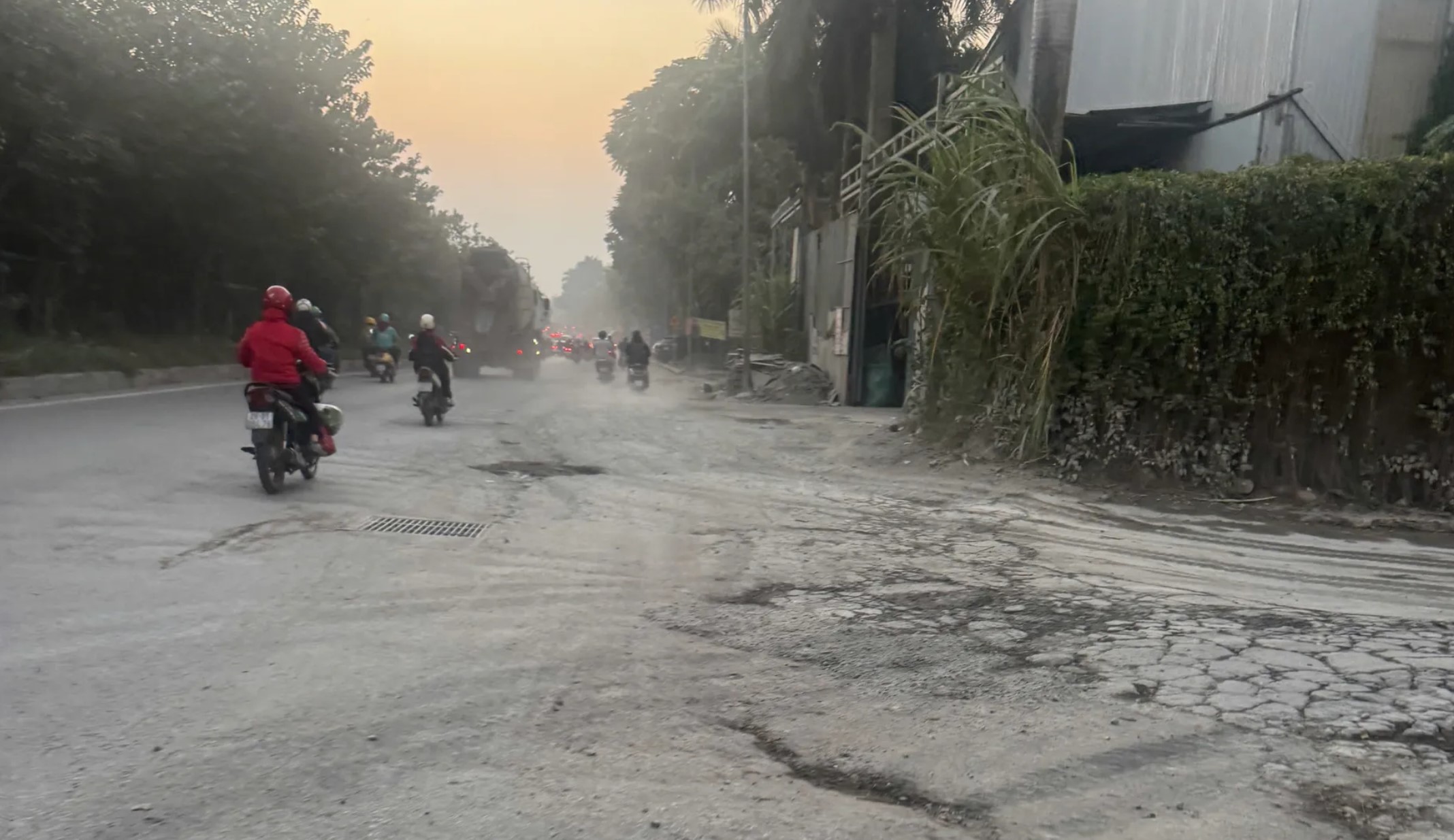 Tuyến đường gom đoạn qua 2 trạm trộn chìm trong bụi đất.