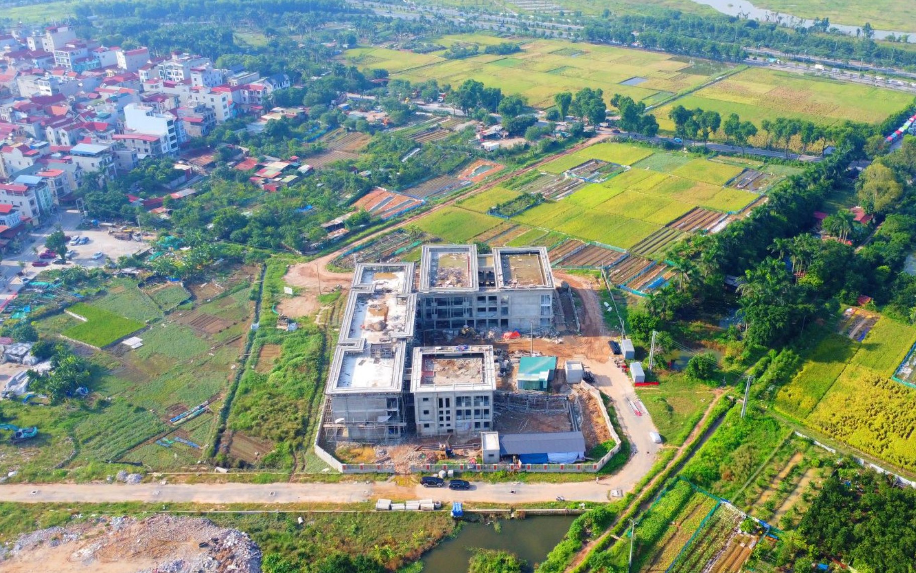Dự án Xây dựng trường mầm non Họa My tại xã Vĩnh Thanh, TP Hà Nội đã hoàn thiện phần thô.