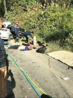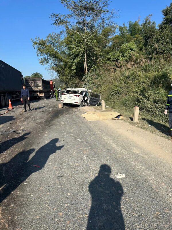 Cú va chạm mạnh khiến 4 người trên ô tô con tử vong tại chỗ, 2 người khác bị thương được người dân và lực lượng chức năng đưa đi cấp cứu. Ngay sau khi nhận tin báo, lực lượng công an đã có mặt tại hiện trường, phân luồng giao thông và phối hợp công tác cứu nạn.
