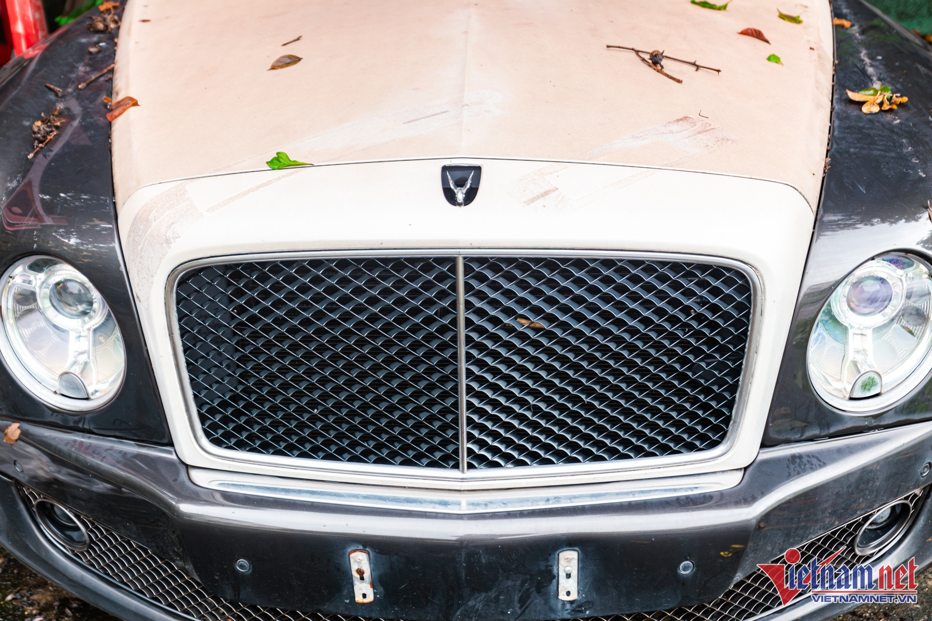 Các chi tiết mạ crôm ở cản trước và mặt ca-lăng không giữ được sự sáng bóng. Bên trong đã có côn trùng làm tổ. Logo Bentley còn nguyên vẹn, song miếng ốp bên trên đã mất.