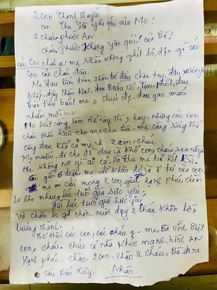 Những dòng chữ run rẩy, ngắn ngủi nhưng chứa đựng nỗi tuyệt vọng của một người mẹ, người bà đã chịu đựng bệnh tật và cô đơn quá lâu.