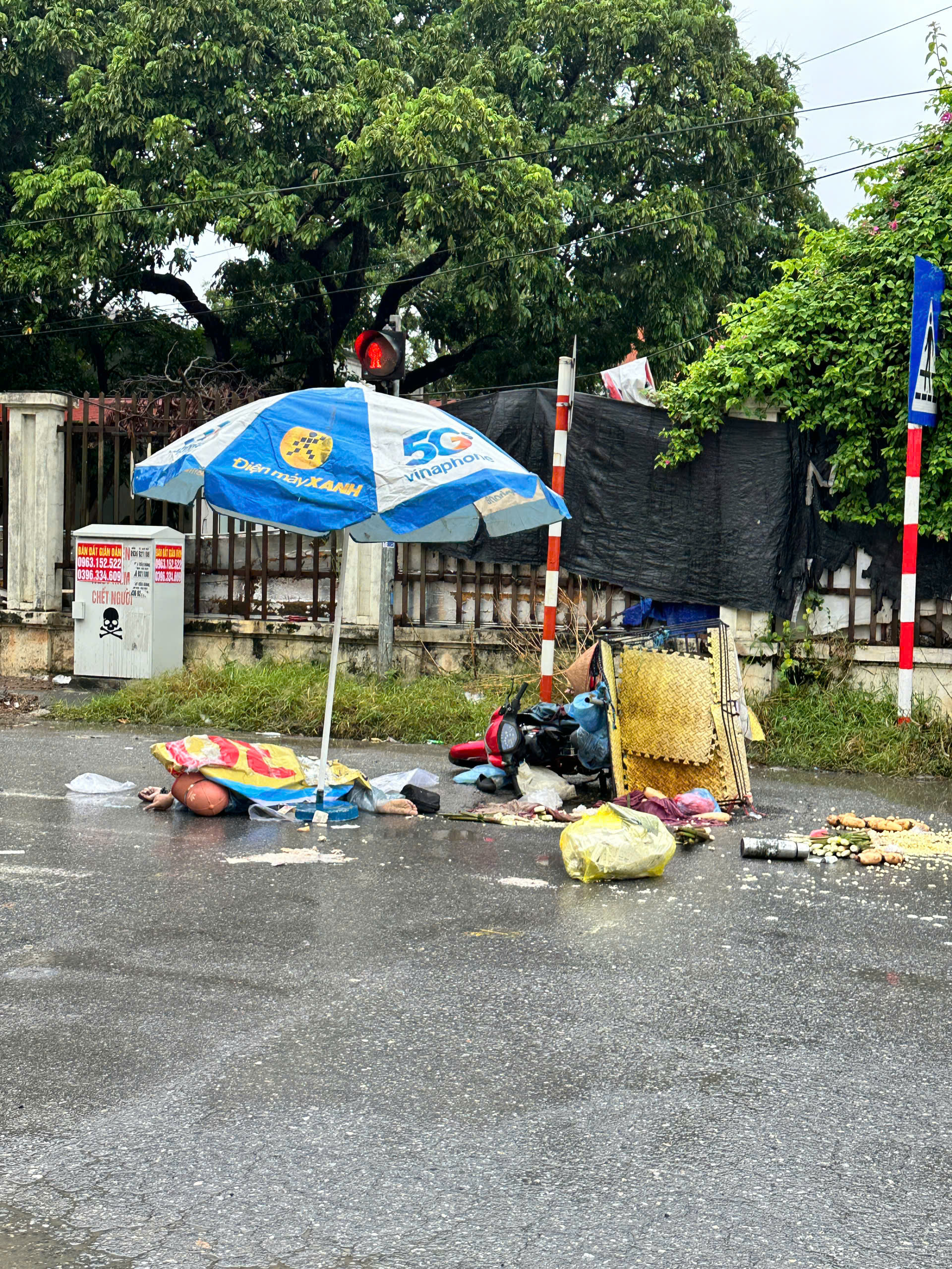 Cú va chạm mạnh khiến người phụ nữ ngã xuống đường, tử vong tại chỗ, nhiều rau củ, nông sản vương vãi khắp mặt đường. Chiếc xe máy và hàng hóa nằm ngổn ngang bên cạnh thi thể khiến nhiều người đi đường không khỏi xót xa và nghẹn lòng.