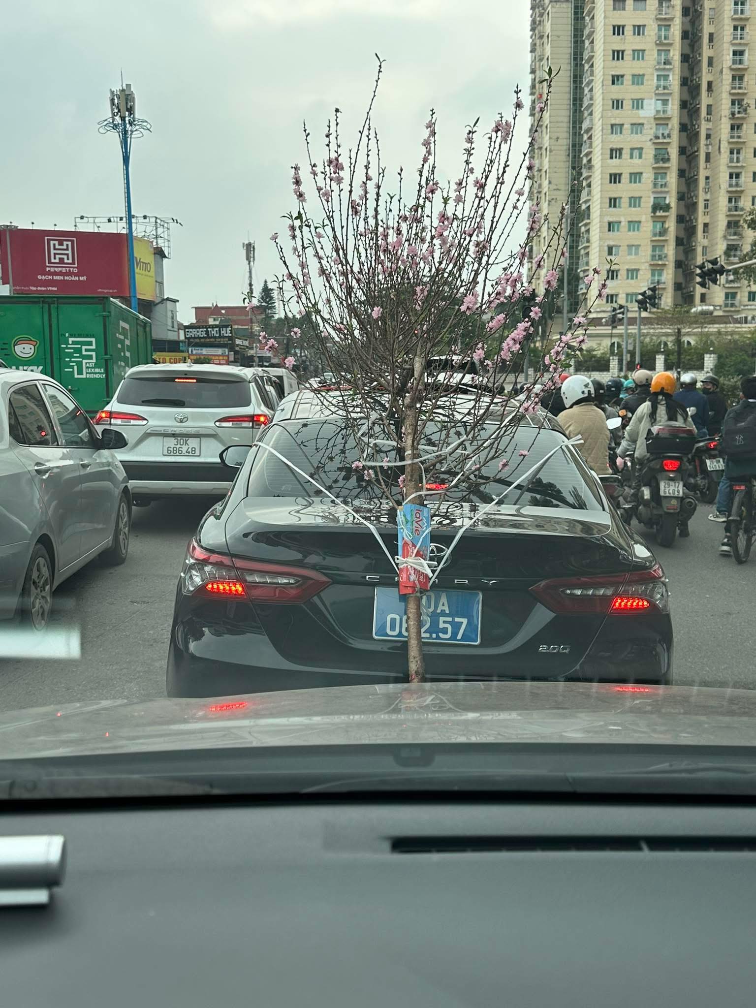 Qua xác minh, khoảng 16 giờ ngày 13-2-2026, tại đường Lạc Long Quân, phường Tây Hồ, Hà Nội, ô tô biển số 80A062.xx (nền xanh, chữ trắng) có hành vi gắn biển số bị che lấp. Hình ảnh cho thấy biển kiểm soát phương tiện bị che khuất, không bảo đảm điều kiện nhận diện theo quy định.